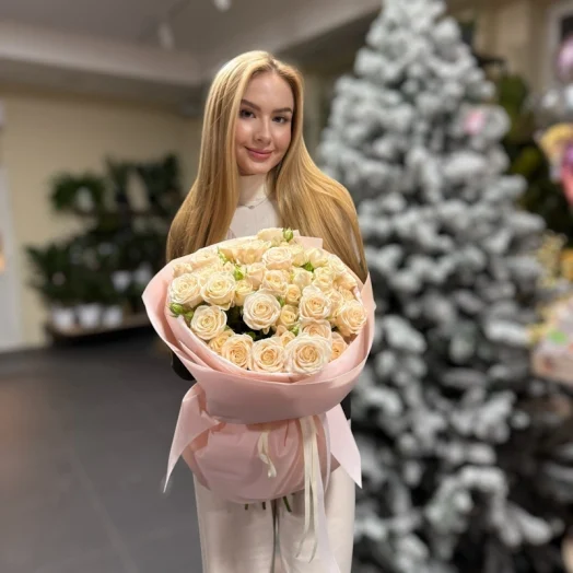 | Свидание | Нежные кустовые розы, эустомы | Легкая крафт-бумага, ленты |