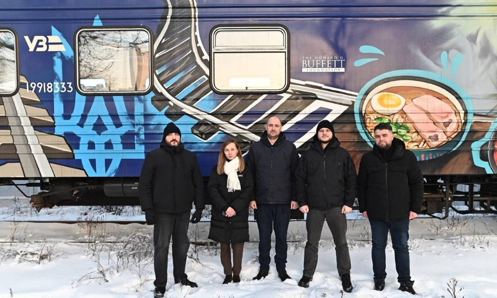 За словами Калашника, за підтримки «Укрзалізниці» та Фундації Говарда Г. Баффета в регіоні почав діяти автономний потяг-кухня. В даний час він функціонує в Бучанському районі, звідки громади Бучі, Ірпеня, Гостомеля, Бородянки, Дмитрівки, Немішаєвого та Білогородки отримують готові порції гарячої їжі. Їжу транспортують безпосередньо в громади та роздають у наметах обігріву поблизу мобільних кухонь.