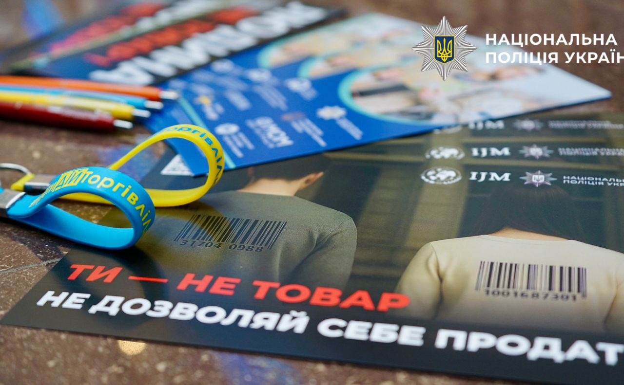 Протягом заходу правоохоронці роздавали інформаційні листівки з порадами щодо запобігання торгівлі людьми та контактними даними гарячих ліній.