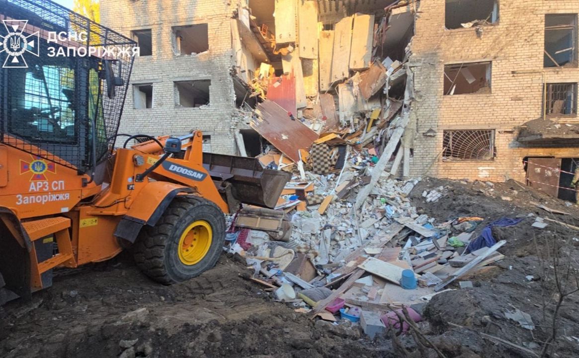 Запоріжжя також стало мішенню для окупантів, які випустили щонайменше 20 БпЛА та 8 ракет. В результаті руйнації декількох поверхів гуртожитку рятувальники дістали тіло літнього чоловіка, а також тривають пошуки ще однієї зниклої людини. Постраждали щонайменше 15 осіб, з них 6 дітей.