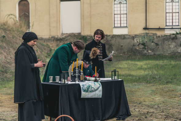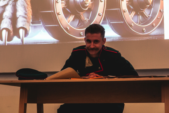 – Сценарії ми зазвичай пишемо після того, як керівник об’єднання – Олексій Руденко – визначить епоху. Цього разу це ХІХ століття, Арсенал у 1860-х. У нас, наприклад, локація присвячена муштрі, щорічним звітам і приїзду інспекції. Ми показуємо, як солдат “чіхвостили” перед керівництвом, як усе відбувалося у звітних документах, – розповідає Грабар перед початком екскурсії. Стоїть у зеленому мундирі, у руці тримає сиву штучну бороду.