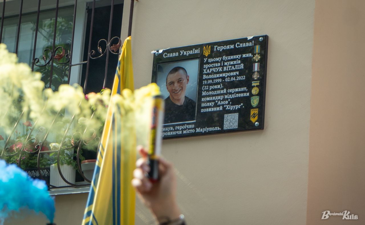 20 вересня у Києві, на вулиці Татарська 38, відбулась урочиста церемонія відкриття меморіальної дошки на честь загиблого бійця полку «Азов» Віталія Харчука з позивним «Хірург».