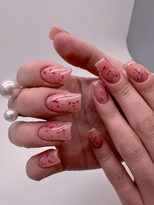 Такий варіант має гарний вигляд як на матових, так і на глянцевих поверхнях. Якщо не хочете надмірності – попросіть нейл-майстра намалювати квіти на одному нігті. В моді також будуть сухоцвіти.