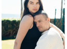 Перед камерою зіркова родина постала в штанах кольору хакі та футболках м’ятного кольору.