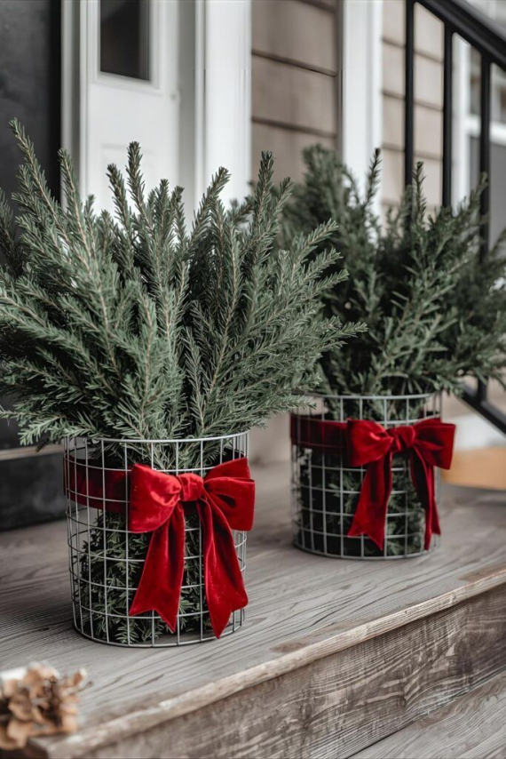 Розмістіть з обох боків дверей маленькі ялинки у горщиках або великі букети з хвої. Жива хвоя наповнює простір святковими ароматами і додає особливої атмосфери.