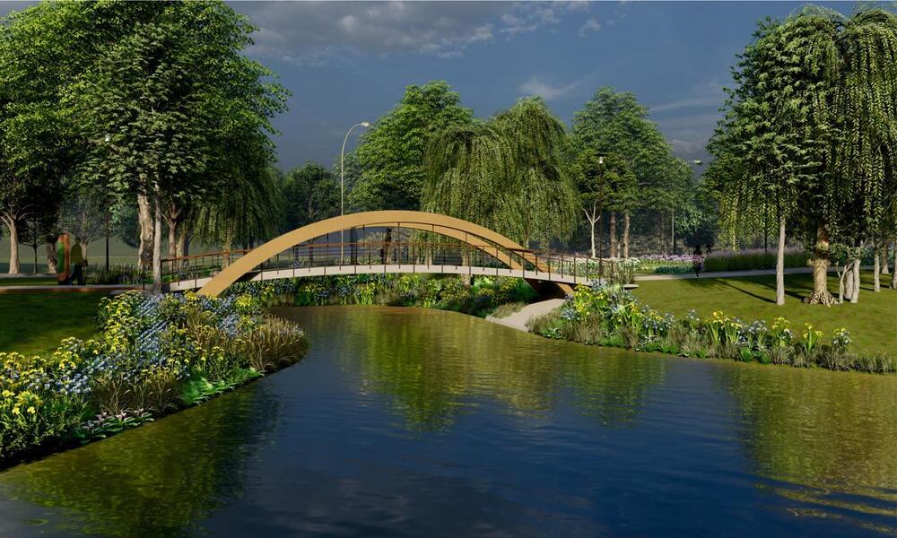 Новий міст стане компонентом комплексного оновлення південно-західної частини парку на Прирічній. Перед розробкою концепції було проведено три етапи відкритих консультацій із мешканцями.