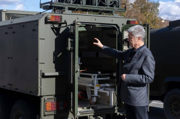 “Броньований Pinzgauer, який обладнаний медичним устаткуванням, буде передано військовому шпиталю. Лікарі звернулися до нас у критичний момент, коли всі евакуаційні автомобілі шпиталю були знищені ворогом, і ми не могли залишитися осторонь”, – розповів Порошенко.