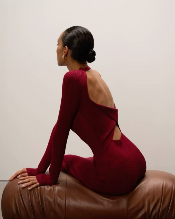 Вдалий образ для походу в ресторан. Завершіть аутфіт туфлями-човниками та клатчем. Прикрас не має бути надто багато. Волосся можна зібрати в пучок або високий хвіст, щоб підкреслити відкриту спину.