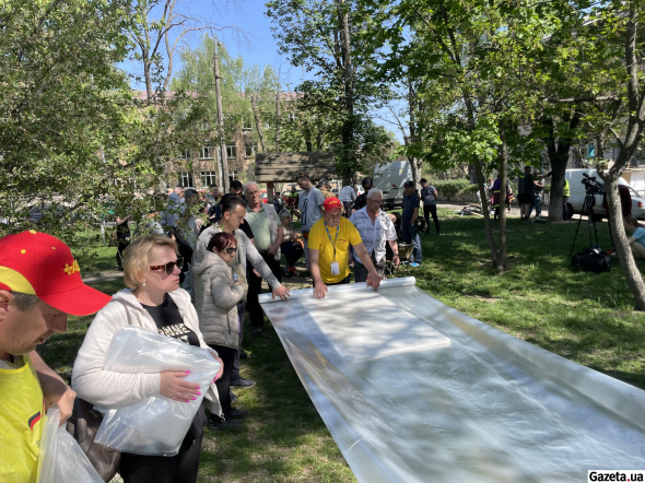 За стрічкою стоїть чоловік, на вигляд років 60. Біля ніг поставив величезний пакет. У пʼятиповерхівці живе його друг.