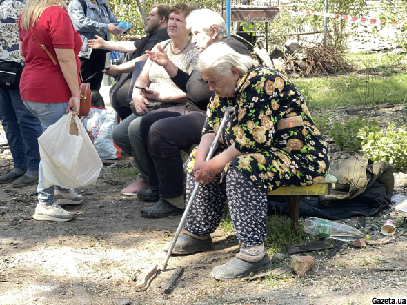 – Він вдома, але нас туди не пускають. Ми хотіли допомогти, щось прибрати в хаті туди-сюди, але стоїмо і дивимось, – каже сивоволосий чоловік. – Вночі всіх виводили, а зараз вже не пускають, бо з даху все скидають, для безпеки.