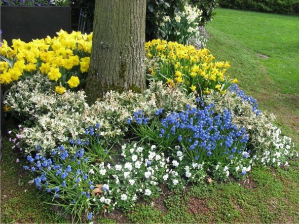 Прекрасно ростуть у пристовбурних колах весняні цибулинні рослини. Дрібноцибулинні – крокуси, мускарі, проліски, гіацинтоідеси не потребують щорічного викопування і чудово розвиваються в пристовбурних колах навіть сильно затінених. Цвітуть і активно ростуть ці рослини навесні і встигають відцвісти та піти у період спокою ще до того, як крона дерев повністю розкриється. Тому їм вистачає сонця та тепла.