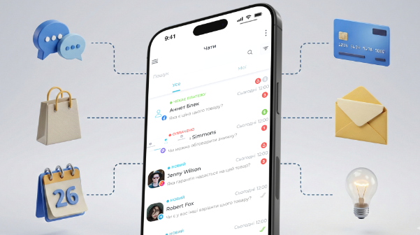 Сучасний підприємець продає не в одному місці. Він має Instagram, Telegram-канал, магазин на Prom або Rozetka, можливо – власний сайт на Хорошоп. Кожен канал генерує замовлення і повідомлення від клієнтів. Без єдиної системи це хаос: менеджер відкриває Instagram, потім Telegram, потім кабінет Prom – і ніде немає повної картини.