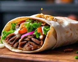 На тортилью – близько 130 г м’яса, 1,5 ст.л. соусу, помідори, перець, цибуля. Скрутіть, обсмажте – і насолоджуйтеся!