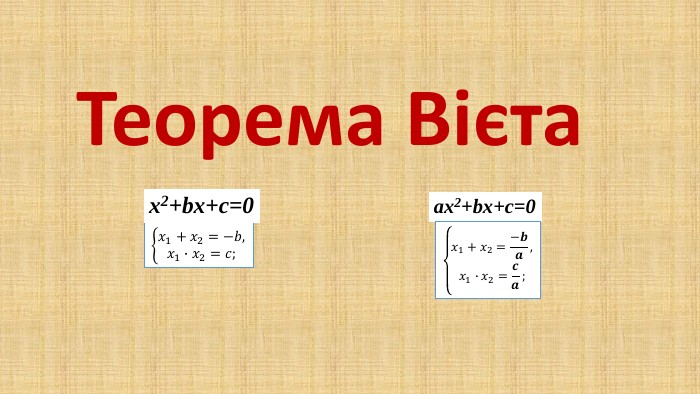 ✨ Цікавий факт: Для зведених рівнянь теорема Вієта працює особливо просто — сума коренів дорівнює коефіцієнту при x з протилежним знаком, а добуток дорівнює вільному члену. Саме тому багато підручників спочатку навчають саме на таких рівняннях.