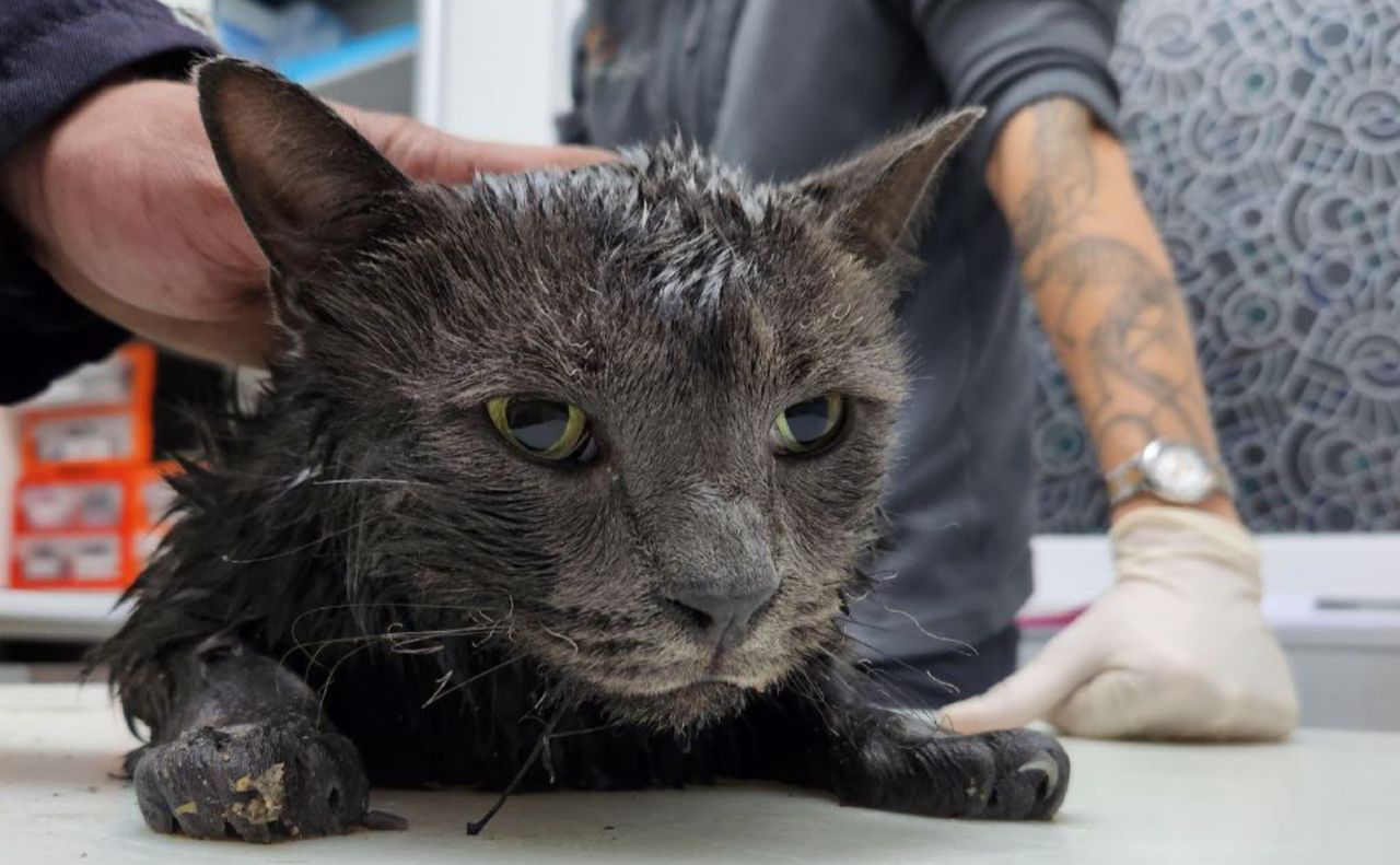 Постраждалий кіт у ветеринарній клініці. Фото: Команда порятунку тварин