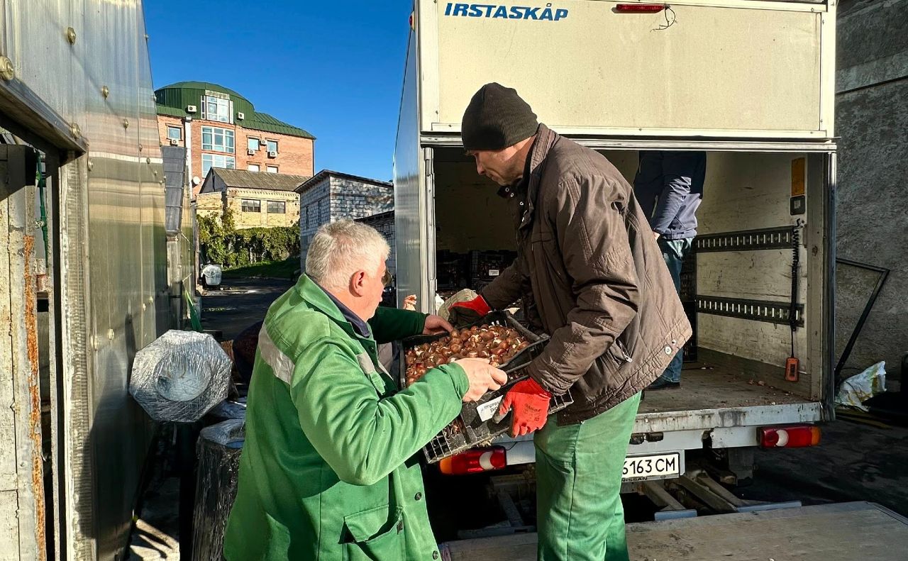 Зеленбудівці опублікували світлини з ящиками, у яких поки безліч непримітних цибулин, по їхнє доставлення до столиці України на своїх соцмережах.