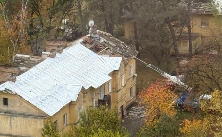 - вул. Новодарницька, 3/15 — найпошкодженіші місця вже укриті брезентом, а решту планують завершити наступного тижня.