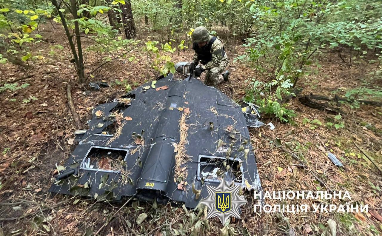 У Дарницькому районі в лісосмузі знайдено уламки ворожого БпЛА з неактивованою бойовою частиною