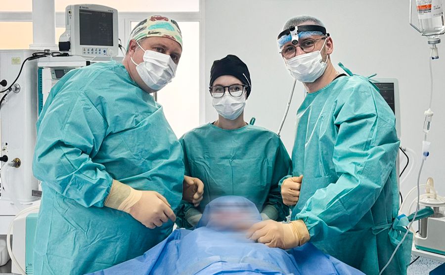 Операцію виконала команда лікарів Медичного центру Нацгвардії у партнерстві з провідними фахівцями Національного медичного університету імені О.О. Богомольця, а саме професором кафедри щелепно-лицевої хірургії Юрієм Чепурним.