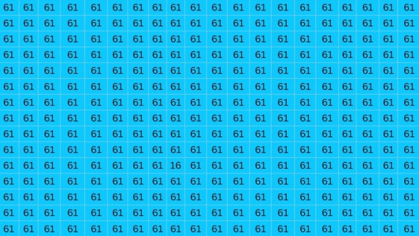 Зображення виглядає як впорядкований візерунок у форматі закритого блоку, де ви можете побачити повторюваний візерунок чисел “61”. Ваше завдання – виявити непарне число “16” у цій числовій оптичній ілюзії. На виконання завдання дається 7 секунд.