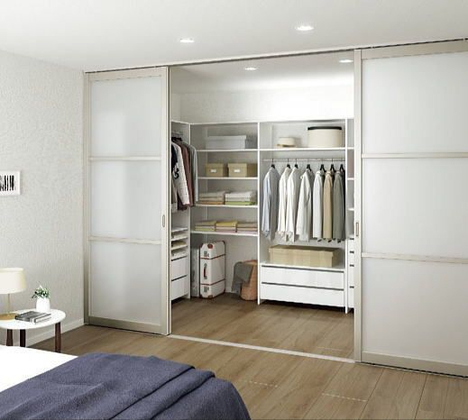 Логічно, що простір для зберігання краще відділяти розсувними дверцятами, які працюють в одній площині. Це особливо актуально для гардеробної в коморі, де важливо зберегти кожен сантиметр.