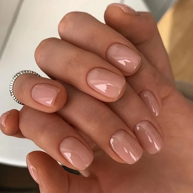 Гладка та блискуча поверхня — нігті виглядають так, ніби їх покрили прозорим лаком, але це досягається за рахунок полірування, а не хімічних покриттів.